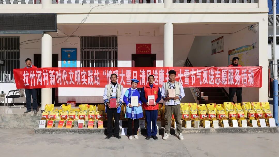 为持续推进石登乡“非遗话‘廉’传薪火 开益声声入人心”非遗传承志愿服务项目走深走实,12月6日,在传统节气“大雪”来临之际,石登乡新时代文明实践所、拉竹河村新时代文明实践站组织非遗传承志愿者,开展“情暖大雪日 清风送廉书”双送志愿服务活动。活动将廉洁文化宣传与节气关怀相结合,通过廉书入户、双语宣讲、走访慰问等形式,为冬日山村注入阵阵清廉暖意。